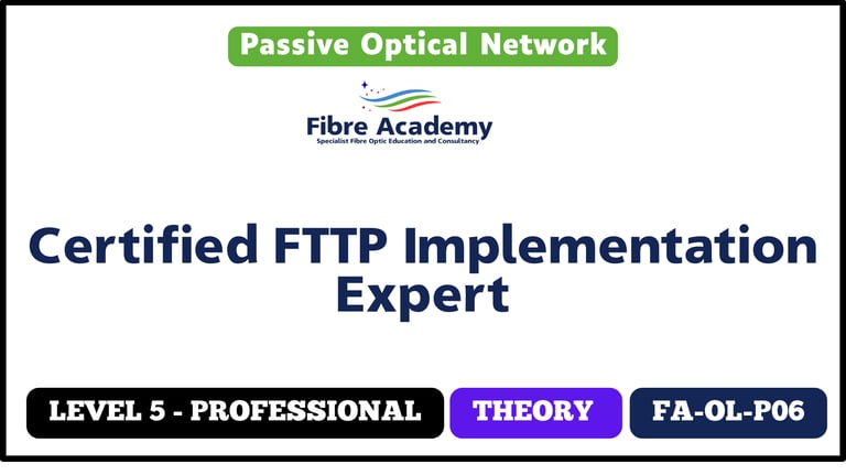 The professional-level capstone for Fibre Academy's FTTP/PON pathway, this course integrates design, build, test, operations, commercial, security, and sustainability knowledge into a comprehensive expert practitioner programme. Advanced case studies, NOC operations scenarios, customer experience management, GDPR in FTTP, sustainability analysis, and structured certification preparation prepare learners for industry recognition and senior technical roles.