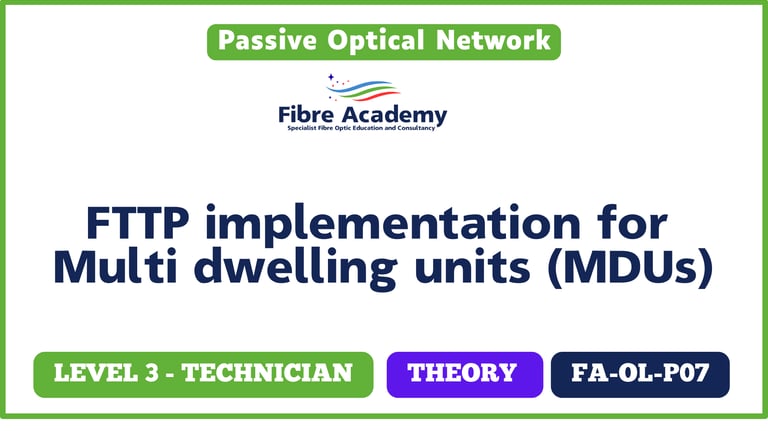 Multi-dwelling units represent one of the fastest-growing and most complex segments of the FTTP rollout, and this specialist course provides everything needed to design, build, commission, and manage fibre networks in apartments, hotels, student accommodation, and mixed-use developments. From wayleave and the Electronic Communications Code to MDU survey, design options, power budget calculations for tall buildings, CDM compliance, commercial models, and future-proofing for XGS-PON, this is the definitive MDU FTTP resource.